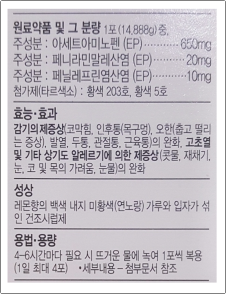 테라플루의 주성분인 아세트아미노펜은